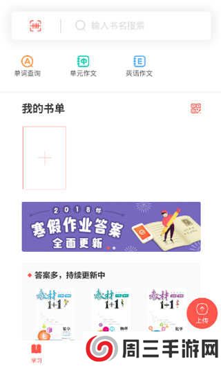 2、在“整本上传”界面,我们点击下方的“上传整本解析”按钮,通过手机摄像头扫描作业背面的条码。