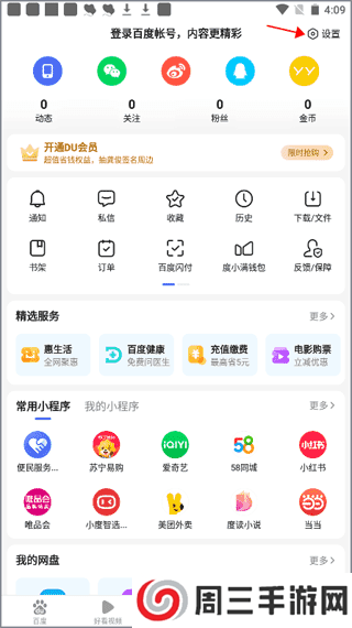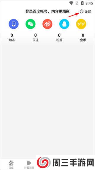 1、首先打开我们手机中的百度app免费最新版,进入个人中心页面,并找到【设置】功能按钮;