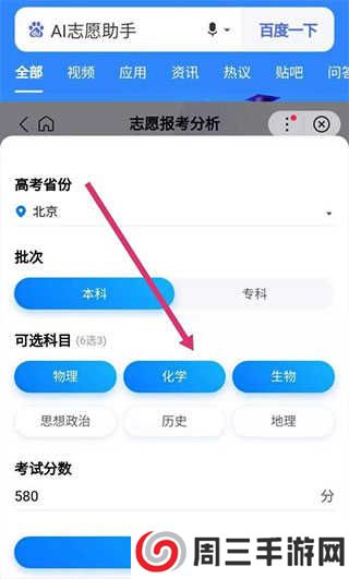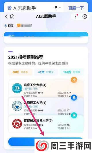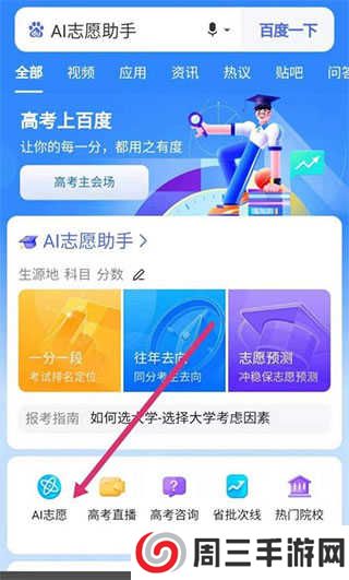 打开手机浏览器,百度搜索AI志愿助手,点击左下角的AI志愿;