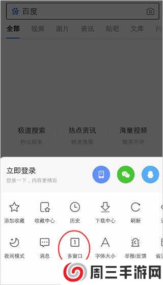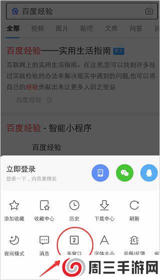 7、进入网页后,还是根据上面的步骤,点击下方的三条横线,再点击【多窗口】就可以查看多个窗口;