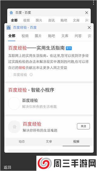 4、进入多窗口页面,就会将刚才的网页缩放为一个窗口,点击下方“返回”就可以退出多窗口;