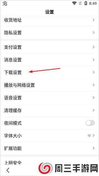 2、进入设置界面后,找到【下载设置】功能,并点击;