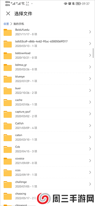 2、接下来进入到手机目录界面,选择需要上传的视频文件。