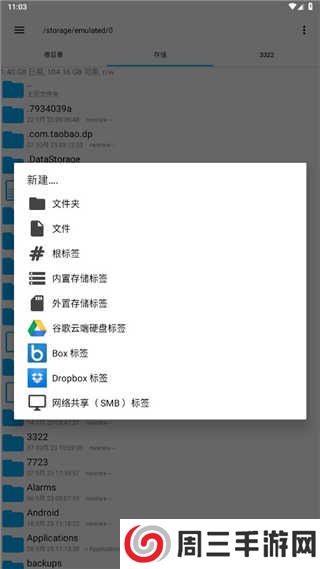 2、并且根据根目录、存储等分类,同时支持用户自己创建一个文件夹板块;