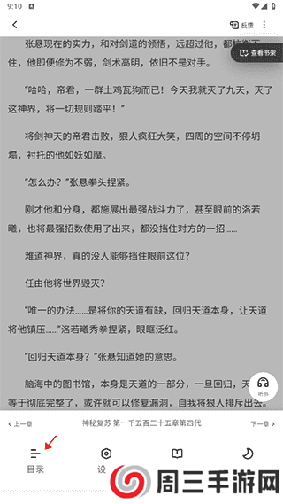 2、然后进入小说阅读页面,在下面选择目录