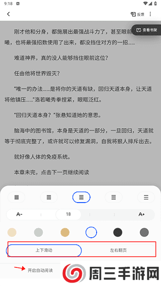 2、然后就可以设置翻页模式了,也可以开启自动阅读