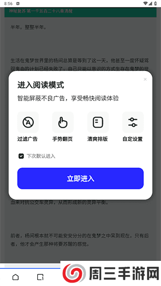 3、功能也非常的简单,可以过滤大量的广告,还可以和其他小说阅读软件一样设置字体,这里点击立即进入