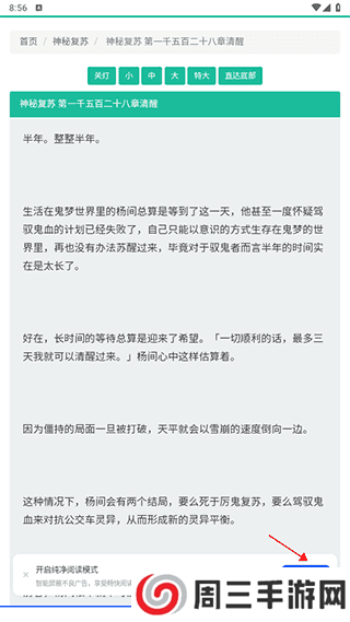2、然后点击进入小说目录直接点进去观看,这个时候下方会提示纯净阅读模式,直接点击立即开始