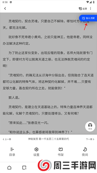 3、点进去一个小说链接,里面有很多的章节,这里点击加入书架是加入不了的