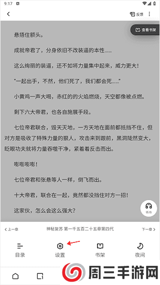 1、进入到小说阅读界面,点击设置