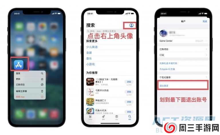 2、点击右上角的头像,拉到最底部,退出我们登陆的ID。