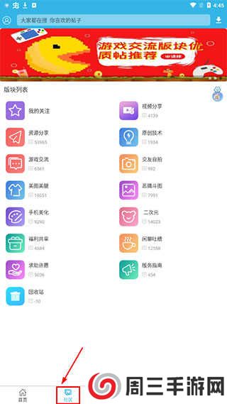 1、点击【社区】模块,找到自己感兴趣的话题;