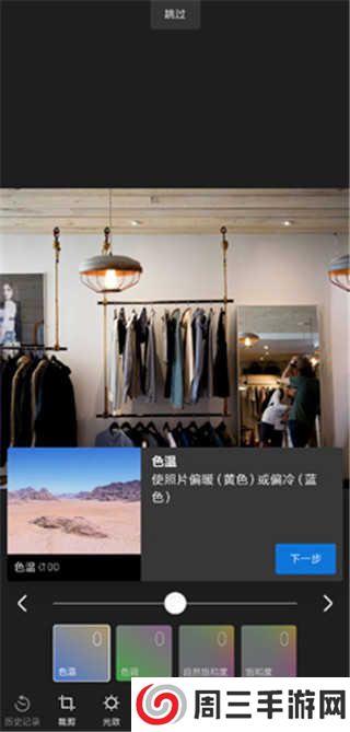 当我们想调整某个参数的时候,例如将色温调整至+100,我们可以采用色块滑动或者进度条调整,前者只需要我们将手指放到色块上面,然后左右滑动即可;后者只需要我们单击色块,然后上下滑动进度条即可。