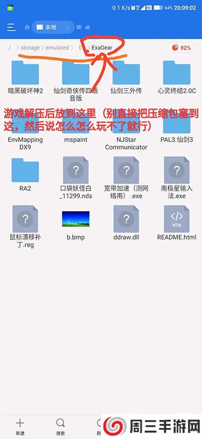 如果游戏不显示把ExaGear文件夹全部大写改成EXAGEAR,如果是其它版本模拟器也可以试试把游戏放Download文件夹。