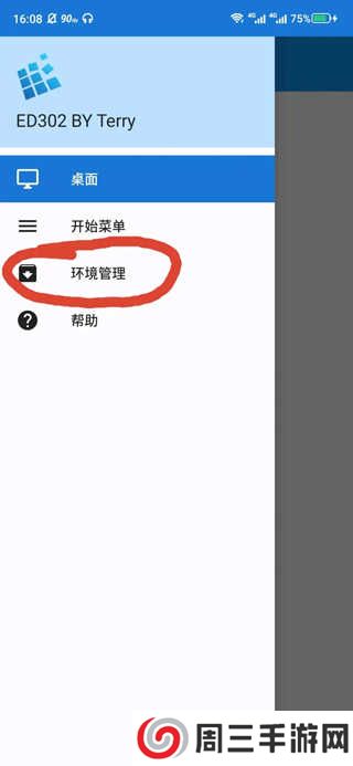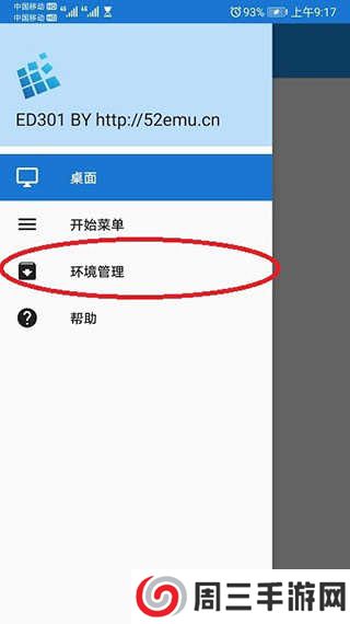 3、接着再去打开exagear模拟器,这时就能进入,打开后再点击左上角的“三”,接着点击环境管理。
