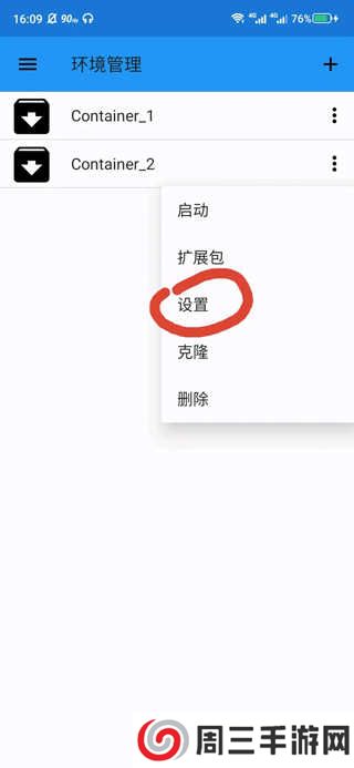11、选择一个环境管理点击左边的三点选择设置