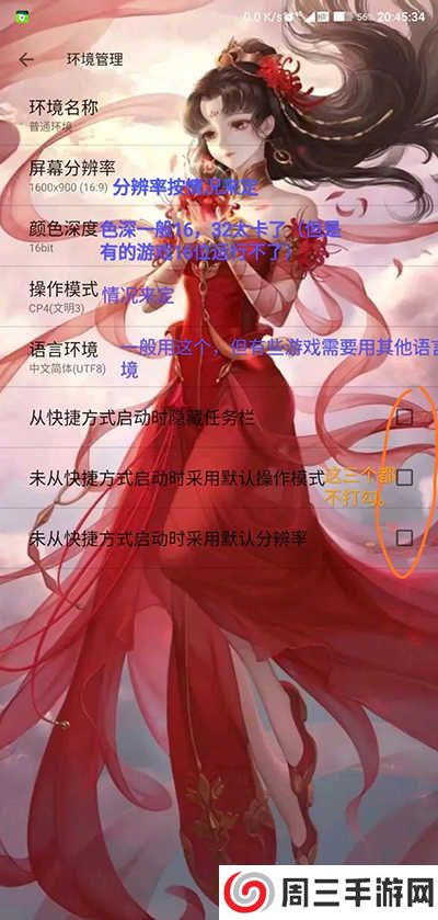 4、下面就是要设置一下参数,像屏幕分辨率、颜色深度、操作模式等,屏幕分辨率是看自己手机性能设置的。