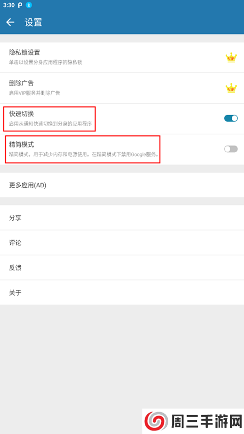 4、也可以在设置里面启动快速切换和精简模式;