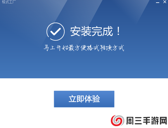 5.格式工厂软件安装完成,如下图所示,表明格式工厂软件已经成功安装到你的电脑上,然后点击界面的立即体验选项,就可以关闭安装界面打开软件进行体验了。