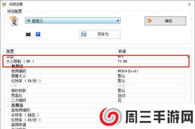 将视频的屏幕大小调制比原版视频要低,将音量控制选项中100%调整到50%,更直接的方法就是直接将大小限制(MB)中调制你想要的视频大小。
