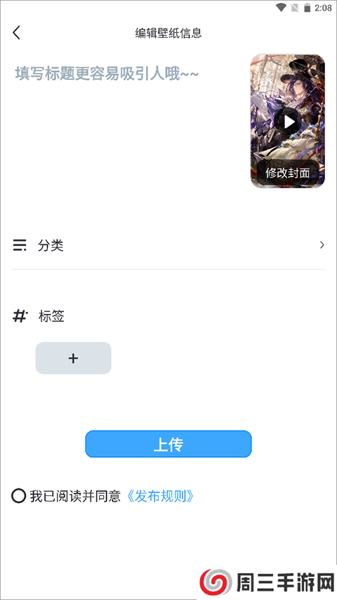 3.然后选择好自己的动态壁纸,接着为其提供撰写好标签,名字等信息,点击【发布】即可。