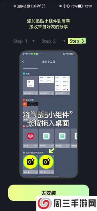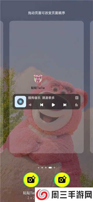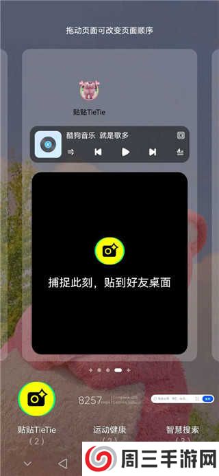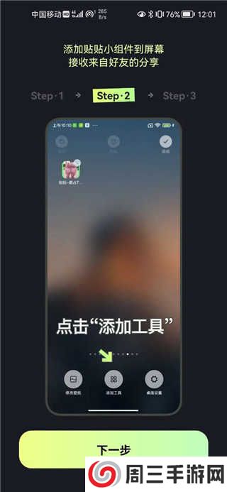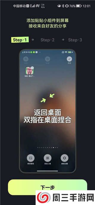 3、然后这里有使用方法,双指在桌面捏合,返回桌面,添加贴贴小组件到屏幕,接收来自好友的分享。