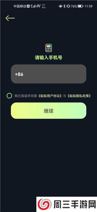 1、首先进入贴贴tietie软件,输入手机号登录;