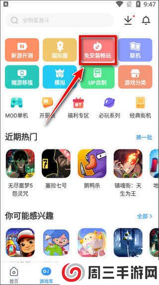 3、选择最热推荐,查看软件推荐的当前热门游戏种类,并选择想玩的游戏。