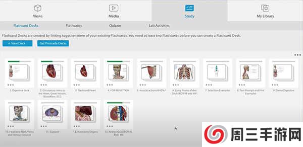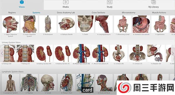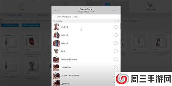 1、在人体解剖学图谱中打开任何3D视图并选择复习卡。