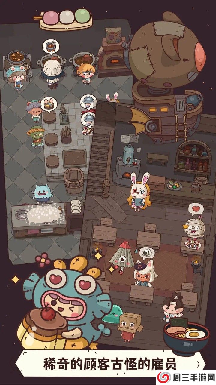 3. 丰富的剧情与角色互动:每个小怪物都有自己独特的故事和心愿,玩家可以通过经营餐厅、解锁图鉴和剧情,深入了解它们的世界。