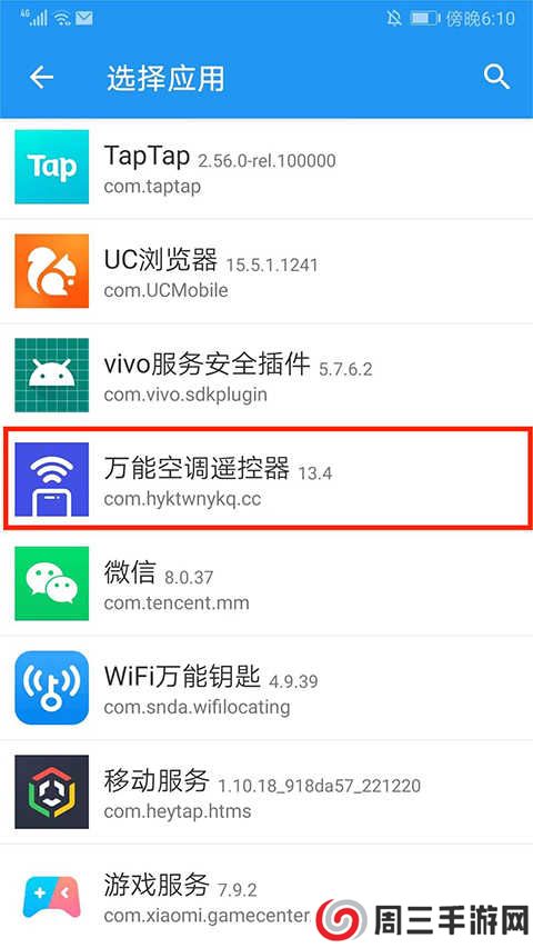 2、这样就可以查看当前手机中所有的应用,并且选择需要的应用进行分身,这里以【万能空调遥控器】为例,