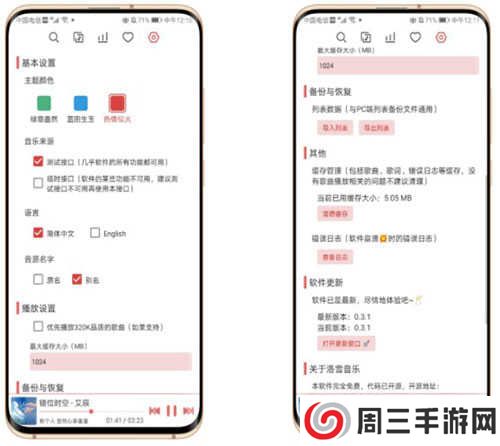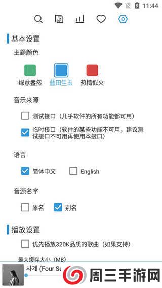 还可以自定义软件界面主题,设置音乐来源;