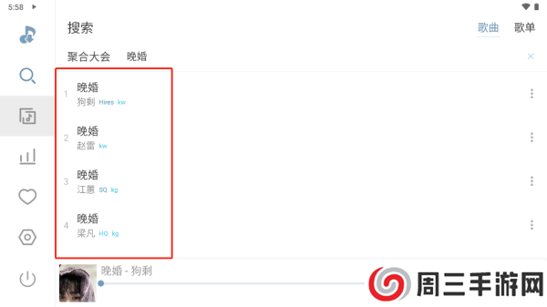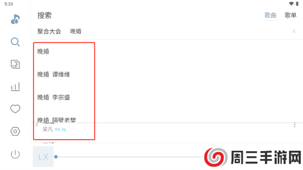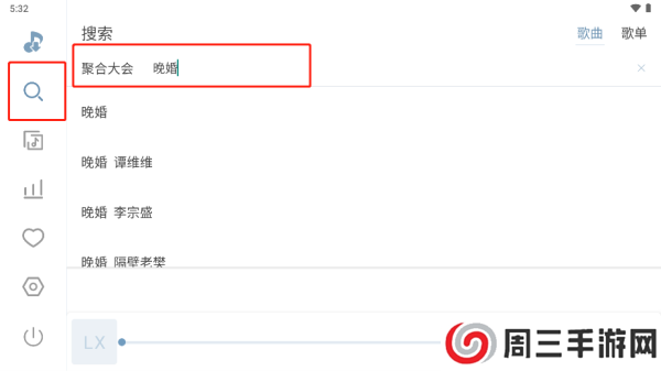 1.如图,先点击左侧放大镜,在搜索栏输入歌名