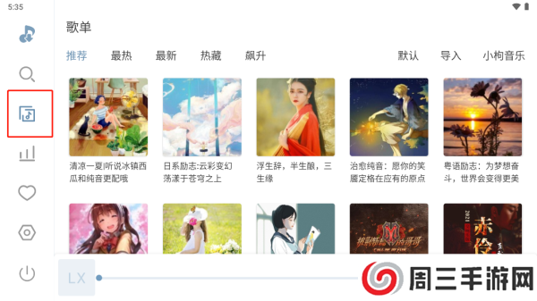 3.点击左侧红框中的图标,会出现歌单分类,可按自己的喜好进行查找收藏