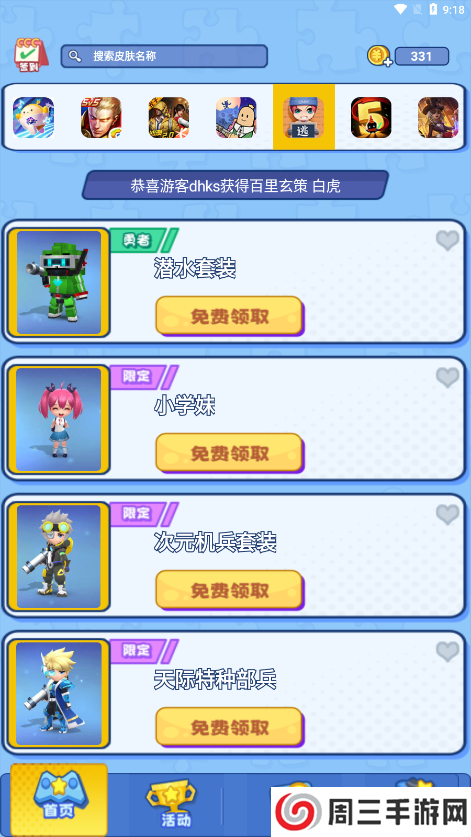 3、多款游戏皮肤一应俱全,可以免费领取各种心仪皮肤。