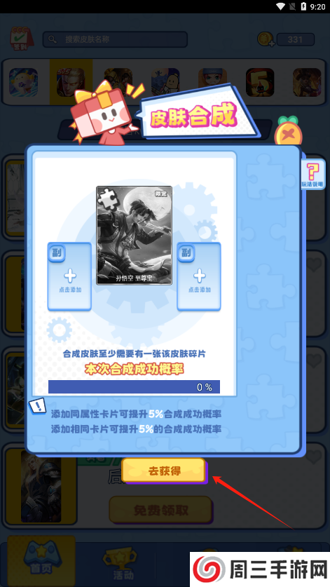 4、点击去获得按钮就可以,去抽取皮肤碎片了,操作也是很