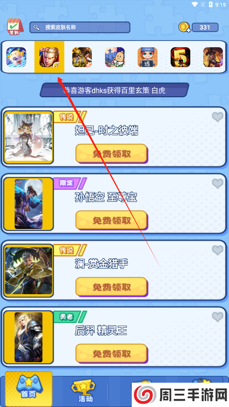 2、在应用内找到自己喜欢的皮肤,按照提示即可免费领取。