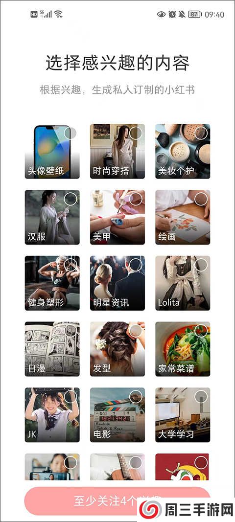 3、选择自己感兴趣的分类内容,系统会根据选择为你推荐相关内容