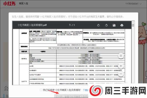 9、进入小红书后,阅读入驻细则,然后点击下一步,查看小红书商家入驻手册;