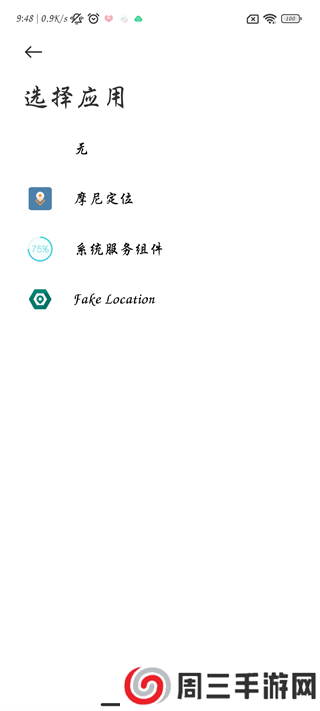 3、随后会自动跳转到“开发者选项”页面,在当前页面找到“选择模拟位置信息应用”,再选择“摩尼定位”即可;