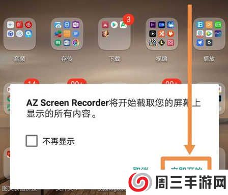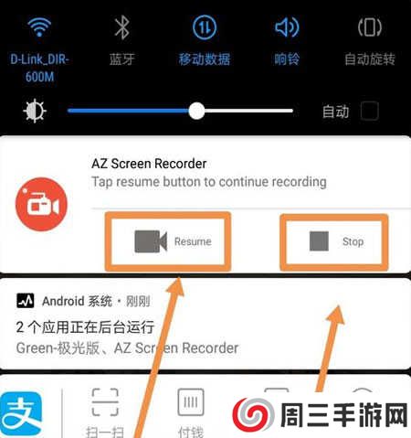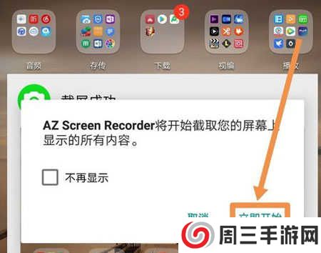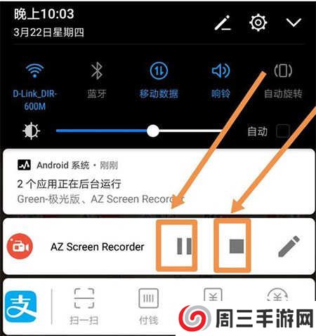 4、回到桌面,下拉任务栏点击录制一段视频。对比一下系统录制的视频。显然,az屏幕录制软件录制的视频,画质更为清晰。手机快速移动闪烁的画面也没有损失画质且没有水印。虽然文件容量大了一些,但是还在可接受的范围内。