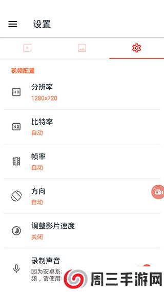 另外这里还可以设置录制视频的分辨率,最高 60 帧的视频帧率、12mbps 比特率,以及方向速度等参数,支持录制声音。