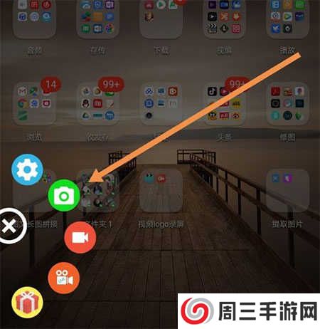 1、在本站下载安装并打开az录屏最新版后,界面中会弹出一个半圈功能键选项,点按其中的相机标志。