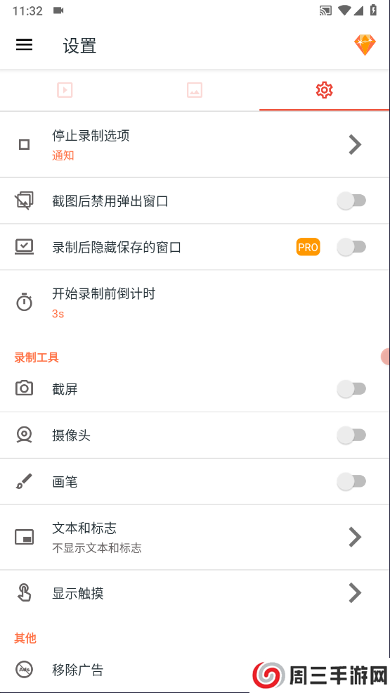 3、AZ Screen Recorder原生无广告,且不会添加任何录制水印,非常好用。首次启动,如果界面是英文的,大家点击软件设置里的左上角菜单栏,进入language,切换到中文即可。