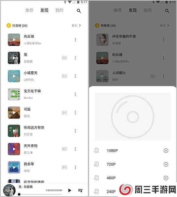 首页发现更是提供了300首热歌榜和抖音榜等多个榜单,每一首都独立标识MV可供下载。提供从240p到1080p清晰度选择。