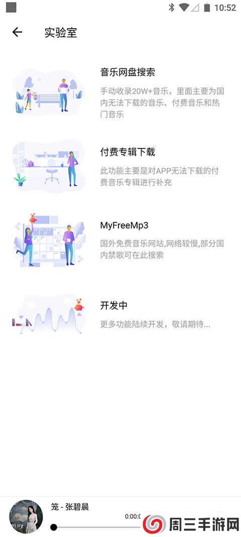 更绝的是还有实验室功能,针对各大音乐网站无法搜索到的歌曲,还能接入国内外和五音助手自己的音乐网盘,不管是国内还是国外再也不怕版权和谐了。