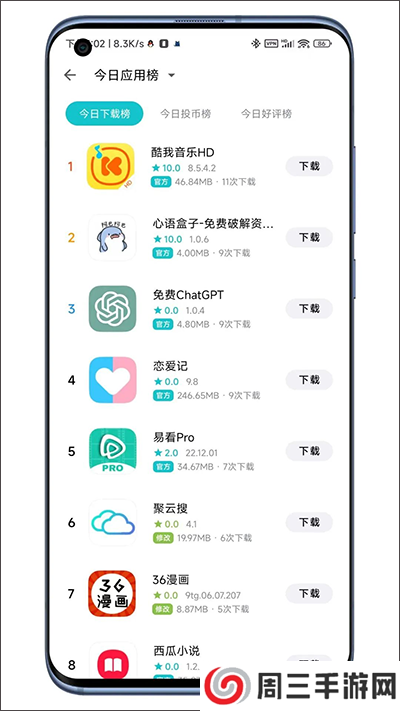 当你不知道下载什么好玩的应用的时候,快来看看排行榜,有下载榜、投币榜、好评榜单,还有封神榜呢!