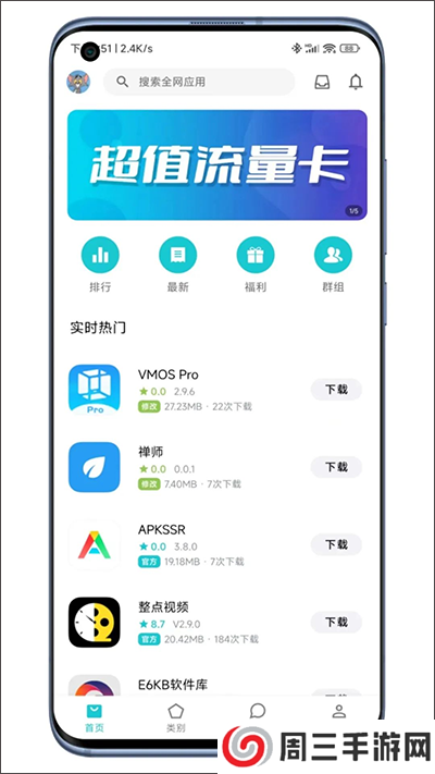 打开首页就是实时下载热门的应用推荐,往下滑无限加载,总有你喜欢的!