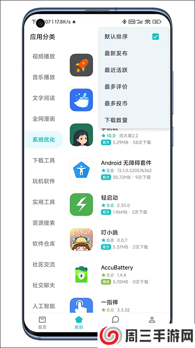 在这里,你可以根据你需要的应用类别来筛选需要的应用。应用类别还提供了各种排序,按照喜欢的排序可以快速找到想要的软件