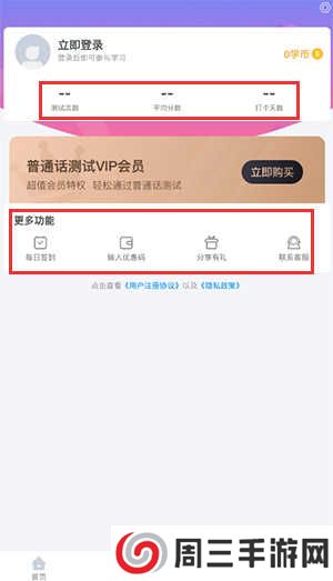 4、点开我的,有每日签到、分享有礼等,还支持查看测试次数、平均分、打卡天数等。